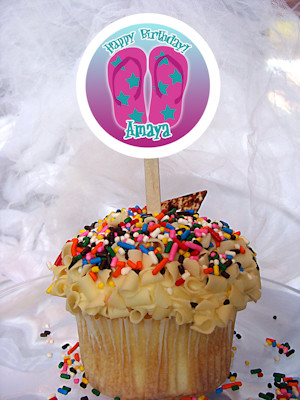 Product Overview 6 Personalized Cupcake Toppers 2.5 inch topper on a wooden stick total height approx. 6 inches. Personalized with a short message such as: Happy Birthday Jen. Reviews (No reviews yet) Write a Review
